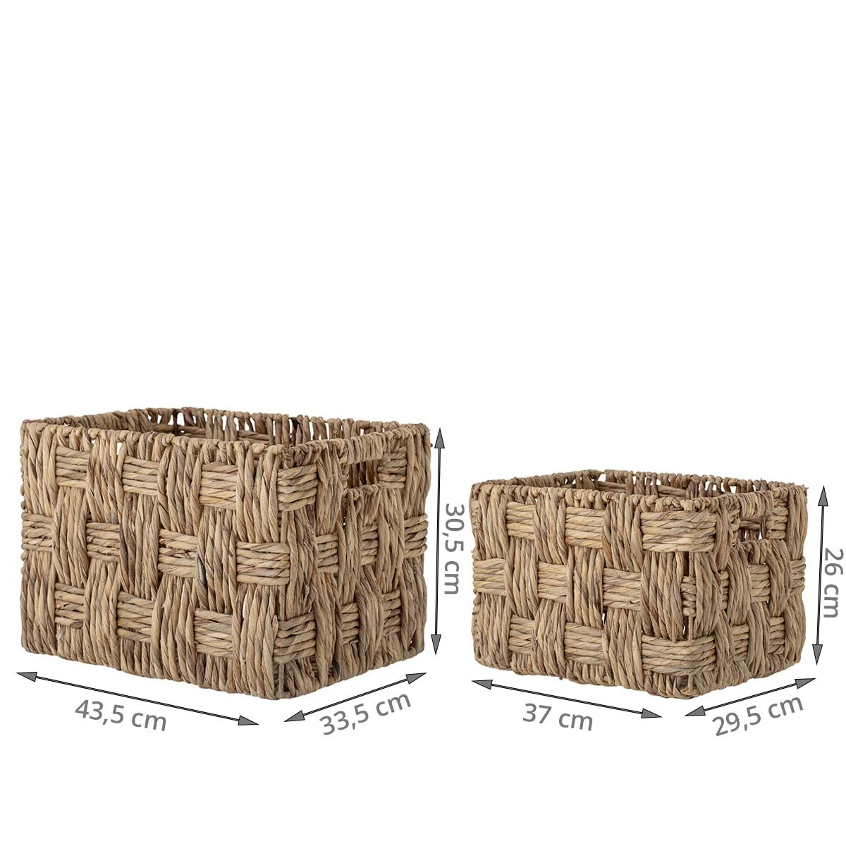 Ces paniers sont très rĂ©sistants avec leurs larges fibres tressĂ©es de jacinthe d’eau et leur armature en mĂ©tal. Les 2 poignĂ©es permettent de les transporter d’un endroit Ă l’autre.
