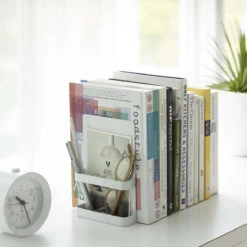 Cette paire de serre-livres en mĂ©tal blanc est Ă la fois discrète et pratique : discrète, par sa matière plate et fine et par sa couleur blanche ; pratique , grâce au compartiment sur l’un d’eux qui permet de ranger des accessoires utiles (crayons, lunettes, règle…). Ces 2 serre-livres vous permettront de maintenir en place vos livres sur une Ă©tagère ou un meuble et de garder Ă porter de main vos outils indispensables pour lire ou travailler. Ils sont particulièrement adaptĂ©s aux petits espaces.