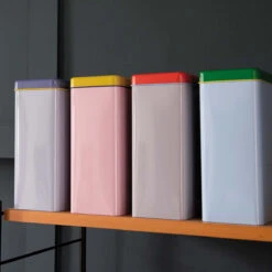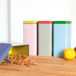 Ces 4 boîtes alimentaires colorées égayeront une cuisine avec leurs différentes couleurs. Elles sont à la fois jolies et pratiques. Elles prennent peu de place dans un placard ou une étagère avec leur forme haute et rectangulaire. Ces 4 boîtes en fer blanc opaque protègent les aliments de la lumière. Elles sont particulièrement adaptées pour conserver thé, café, épices, infusion et toutes sortes de produits naturels.