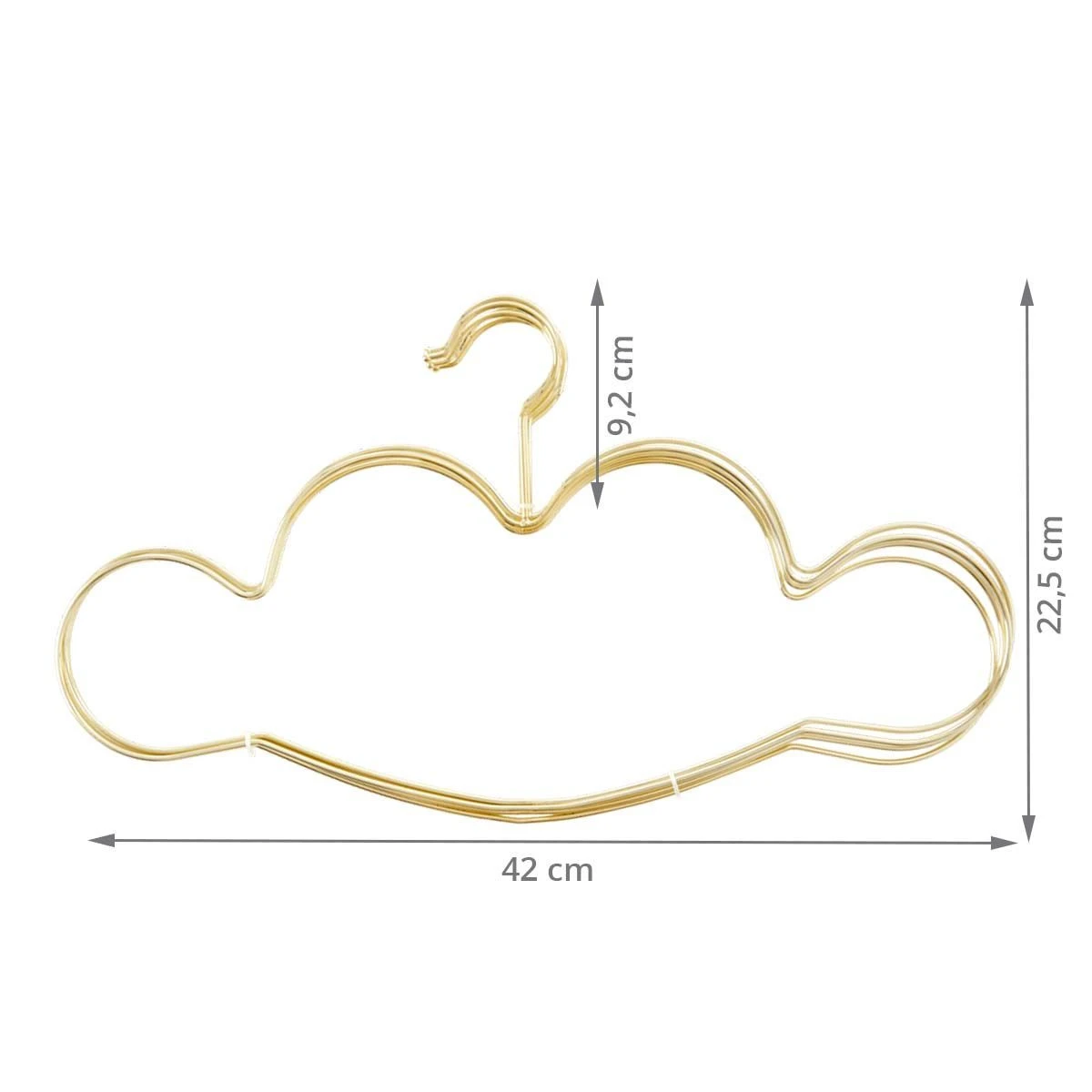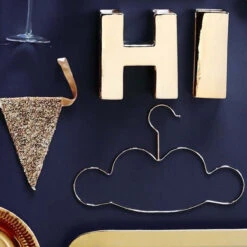 Ces cintres en métal doré animeront votre penderie avec leur forme de nuage. Ils sont design, originaux et pratiques. L’arrondi du nuage fait office d’encoches pour maintenir en place les bretelles des robes. Vous pourrez également y suspendre des pantalons sur la partie inférieure qui sert de traverse. Ces cintres en métal iront aussi bien dans un dressing d’adulte que dans une boutique de vêtements.