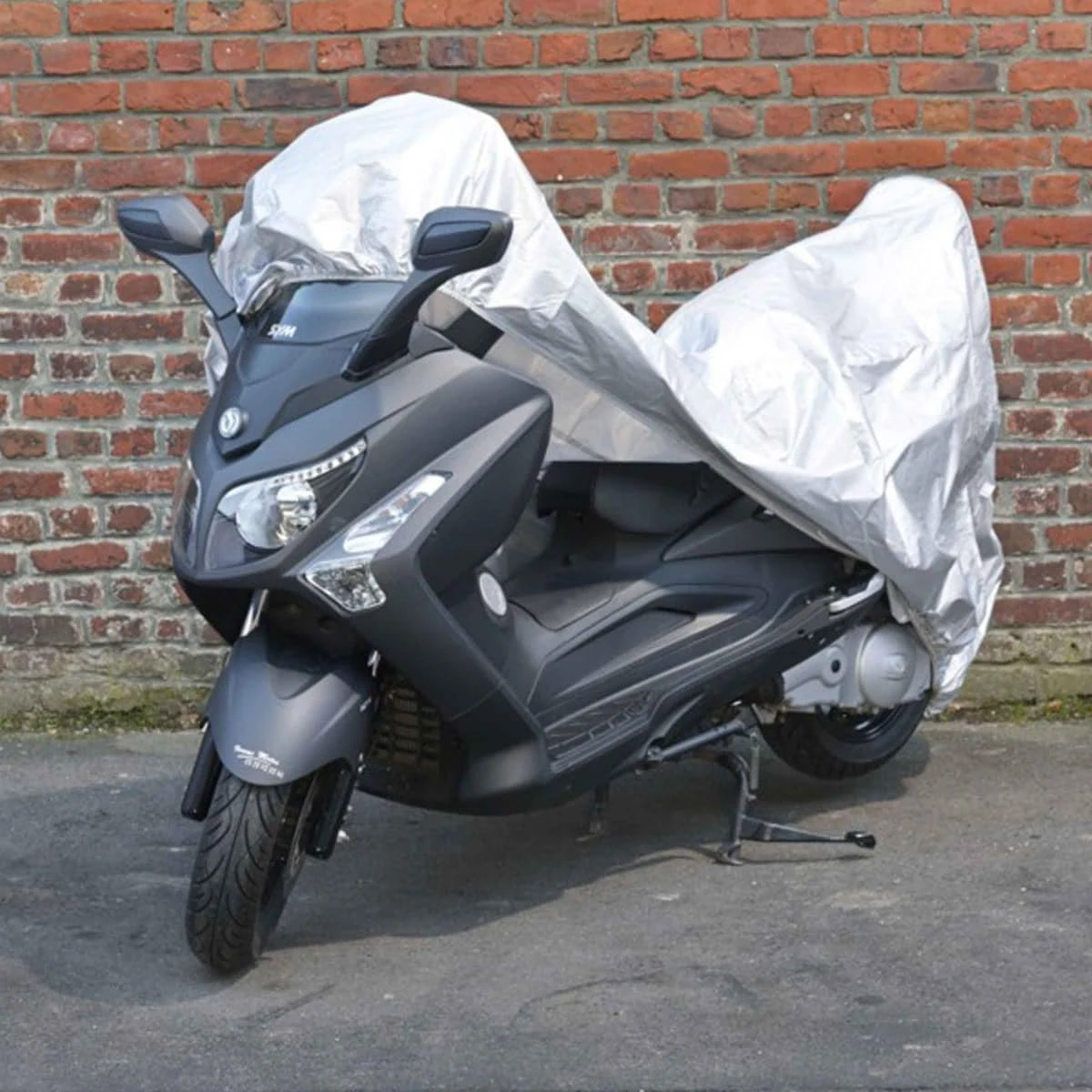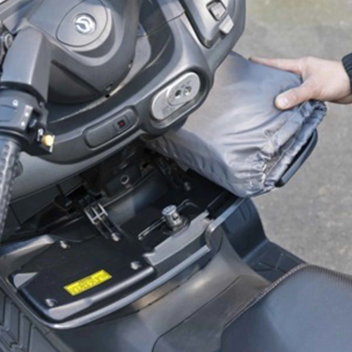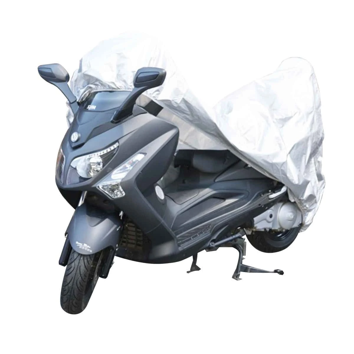 Cette grande bâche protègera votre scooter de la pluie, de la poussière, des dĂ©jections d’oiseaux et mĂŞme de la chaleur. Elle est en polyester rĂ©flĂ©chissant et sèche en 30 secondes. Cette housse de protection est ample et lĂ©gère. Elle couvre un scooter stationnĂ© Ă l’intĂ©rieur comme Ă l’extĂ©rieur. Elle se plie très facilement pour se ranger dans un petit sac peu encombrant que vous pourrez laisser dans votre scooter pour avoir toujours cette bâche Ă portĂ©e de main. Pour ne pas se la faire voler, on peut y glisser le cadenas du scooter dans 2 perforations de la bâche.