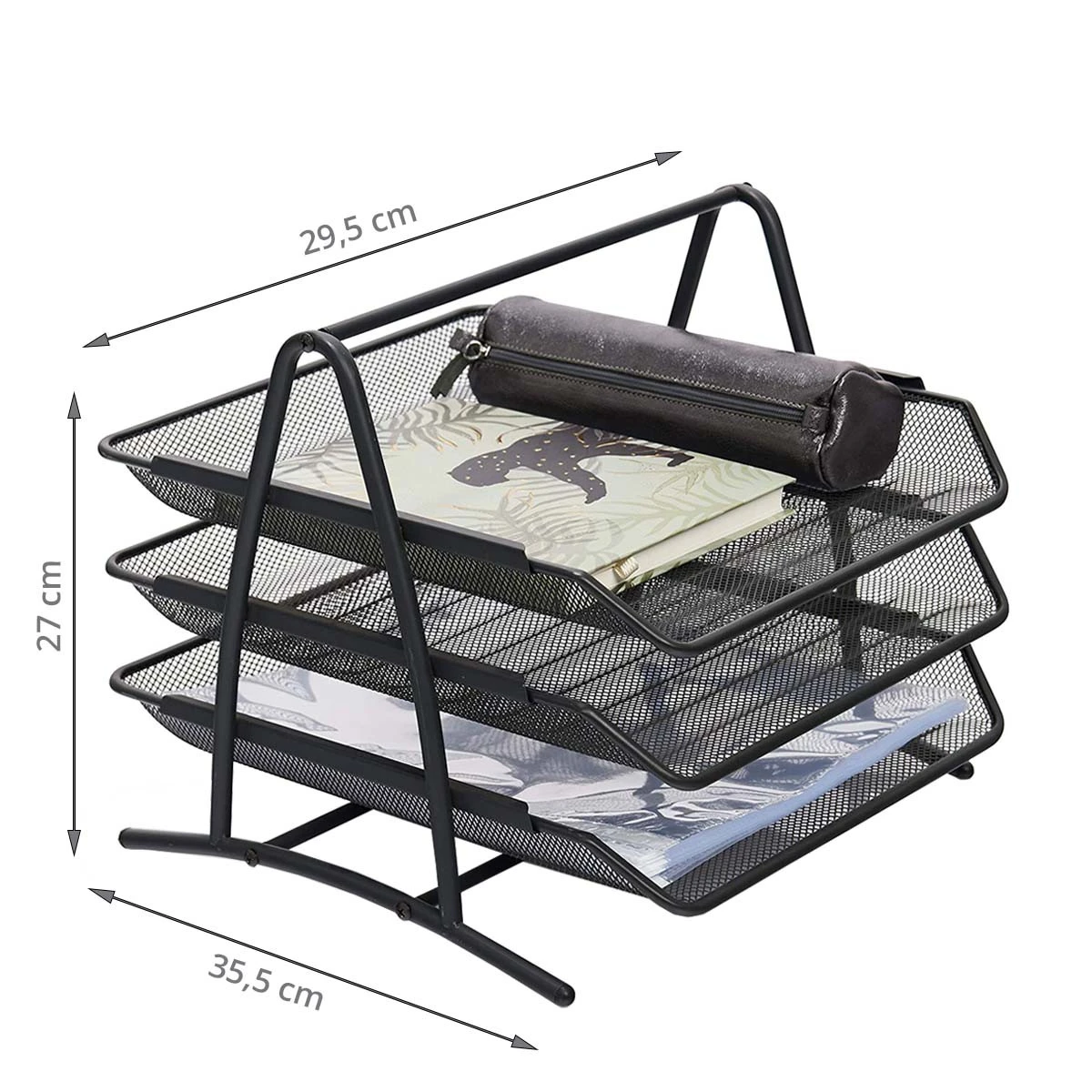 Cet ensemble de 3 bannettes est très pratique dans un bureau pour trier le courrier ou des documents de format A4. Ces corbeilles Ă courrier en mĂ©tal ajourĂ© noir sont solides et Ă©lĂ©gantes. Elles sont utiles pour avoir un espace d’accueil ou un bureau bien organisĂ©.