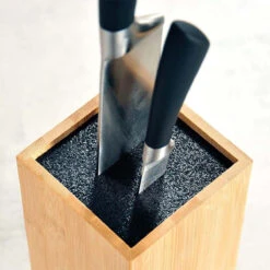 Ce bloc Ă couteaux en bambou est idĂ©al pour ranger ses couteaux de cuisine sur le plan de travail. Les lames sont ainsi protĂ©gĂ©es pour Ă©viter de se couper. L’intĂ©rieur est composĂ© de tiges en bambou dans lesquels les couteaux peuvent s’insĂ©rer. Ce support convient Ă toutes les tailles de couteaux.