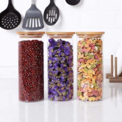 Ce bocal en verre et bois est parfait pour ranger dans une cuisine des spaghettis mais aussi toute sorte d’aliments secs. Il existe dans diffĂ©rentes tailles pour s’adapter aux quantitĂ©s et formats de vos produits. Ces pots sont très utiles si vous achetez fĂ©culents, graines, cĂ©rĂ©ales, riz…. en vrac. Ils sont lĂ©gers et rĂ©sistants. Le verre vient d’Europe et le bouchon en hĂŞtre de France.