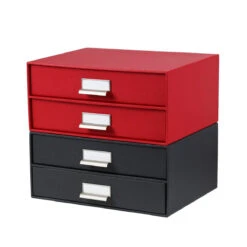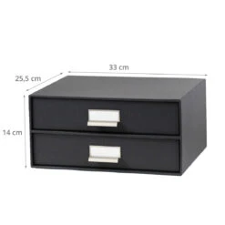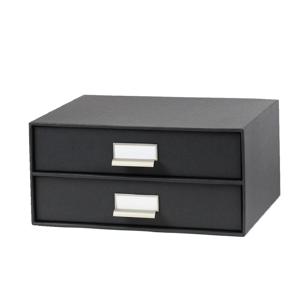 Ce bloc à deux tiroirs en carton gris anthracite vous permettra de ranger vos papiers dans votre bureau ou votre entrée. Il pourra recueillir vos documents A4, votre courrier ou vos fournitures. Ses 2 porte-étiquettes en métal vous aideront à repérer facilement ce que vous y avez classé.