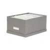 Boîte de rangement format A4 en carton recyclé blanchi recouvert de papier laminé gris anthracite.