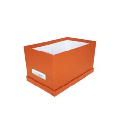 Boîte rectangulaire en carton recouvert de papier laminé terracotta.