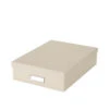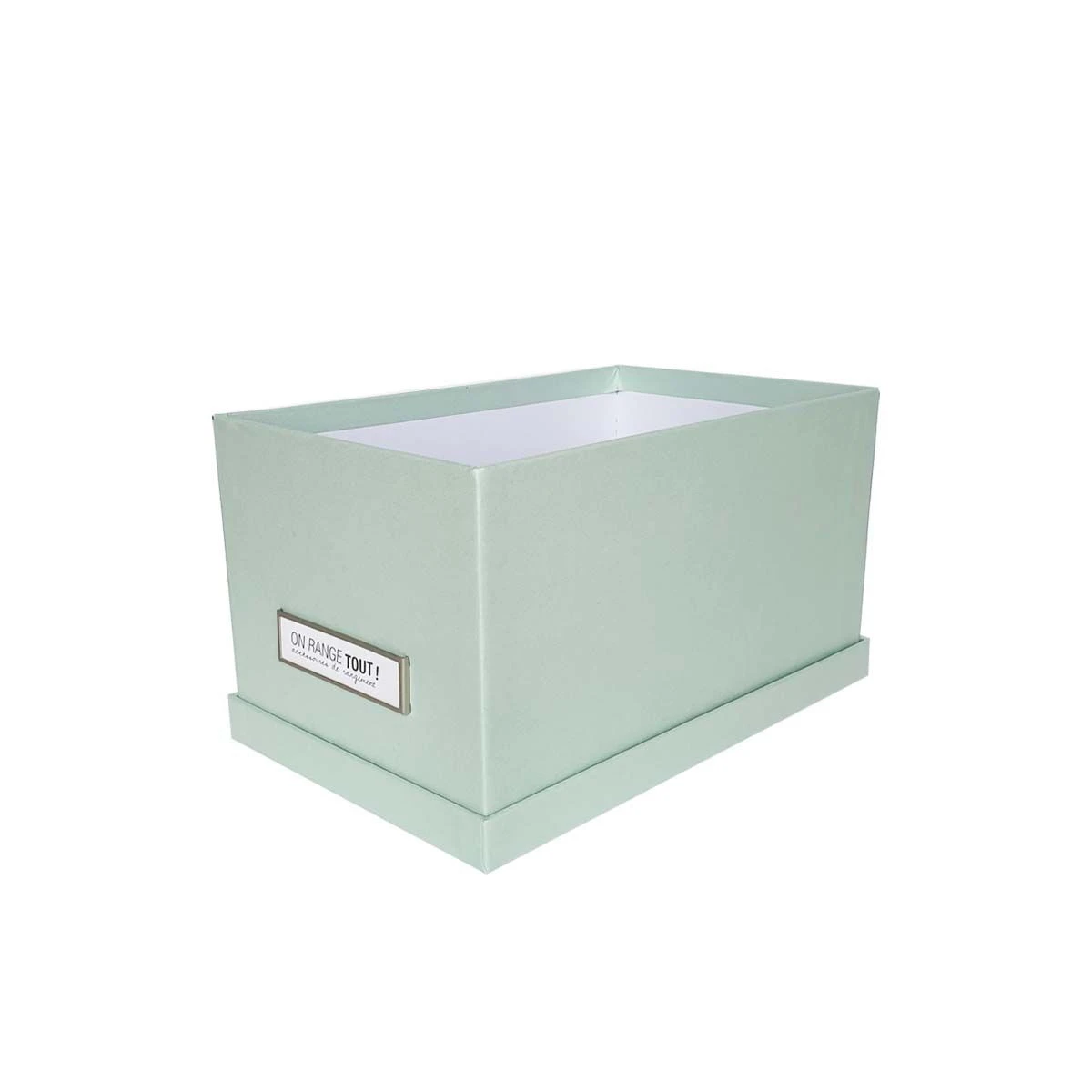Boîte rectangulaire en carton avec porte-étiquette.