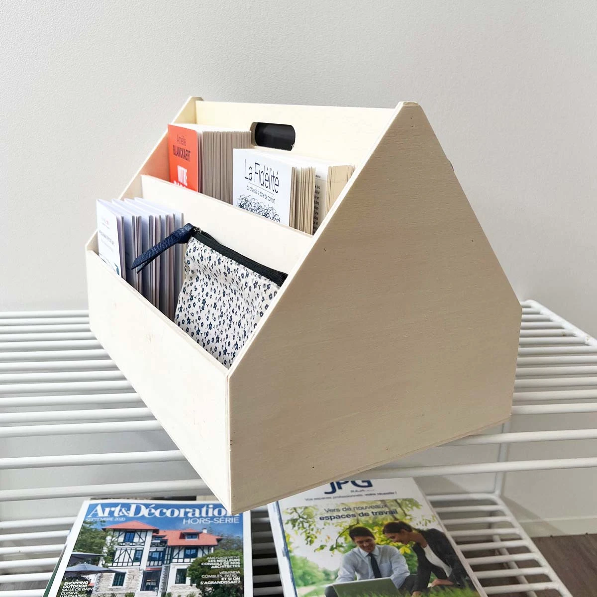 Cette boîte en bois est très utile pour y ranger des livres d’enfants et faire comme une petite bibliothèque accessible. Elle se transporte facilement avec sa poignée intégrée et se pose un peu partout : à même le sol ou sur table. Ce casier de rangement possède 4 compartiments pour y ranger les histoires préférées de votre enfant, ses livres à lire…. ou même ses affaires de bureau.