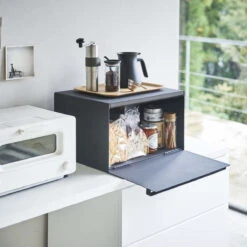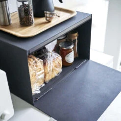 Cette boîte placard est multi-fonction. Elle peut servir de grande boîte à pain comme de placard de cuisine à poser sur le plan de travail. Voilà un rangement très utile dans une petite cuisine avec peu de meubles ! Peu encombrant, ce petit placard de cuisine a une bonne contenance. Vous pourrez y ranger les aliments que vous utilisez régulièrement comme le pain, les pâtes, le riz, la confiture….