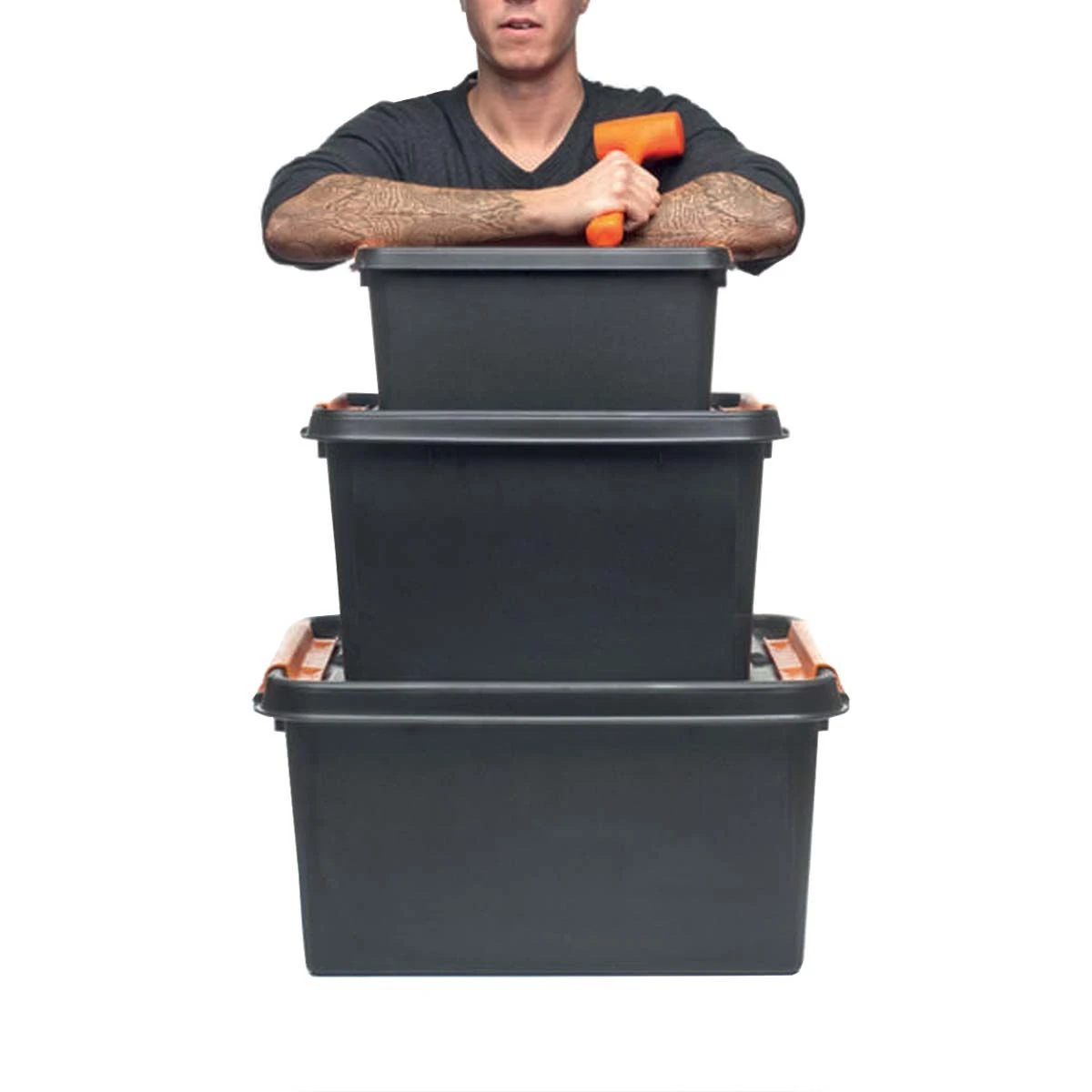 Boîte de rangement incassable en plastique noir (Polypropylène).