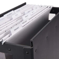 Idéale pour ranger et trier ses dossiers, cette boîte de rangement rentre parfaitement dans une armoire de bureau de plus de 35 cm de profondeur.