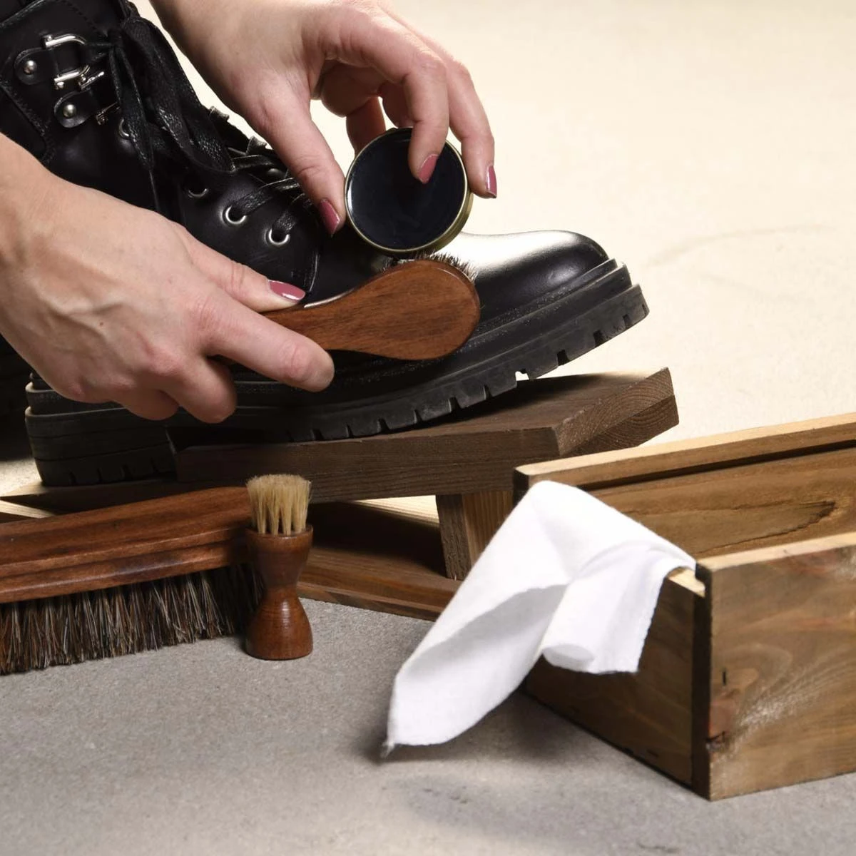 - Une grande brosse : en crin de cheval, cette brosse permet d’enlever la saletĂ© et de lustrer vos chaussures.