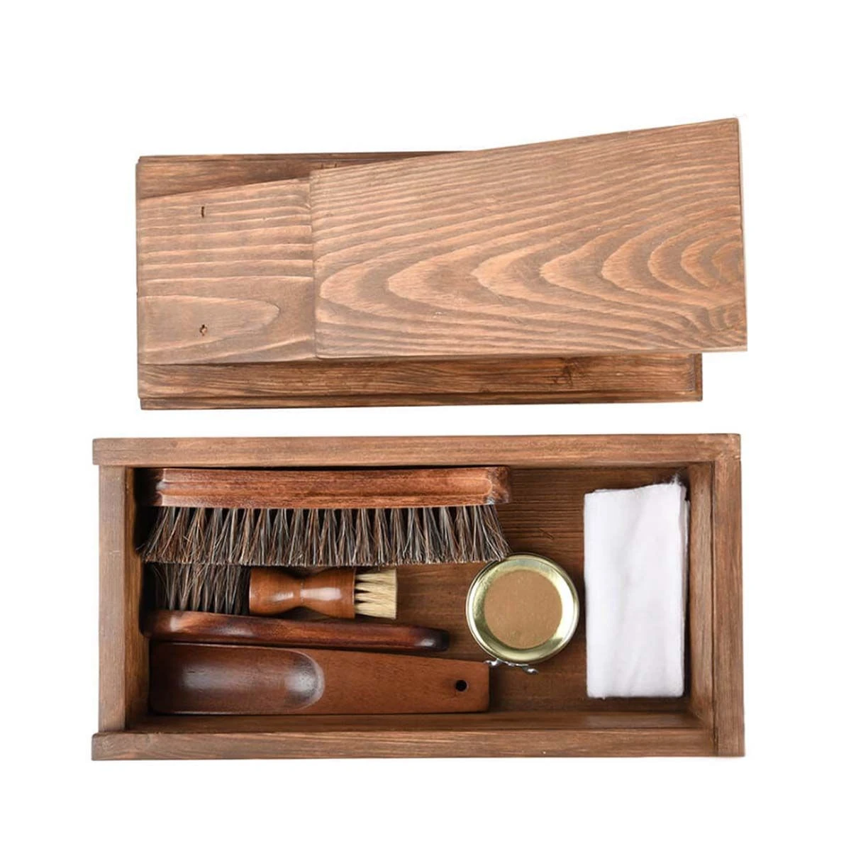 - Une brosse mĂ©dium : en crin de cheval, cette brosse permet d’appliquer le cirage et de nettoyer vos chaussures. Ă€ utiliser avec un savon de nettoyage pour le cuir.