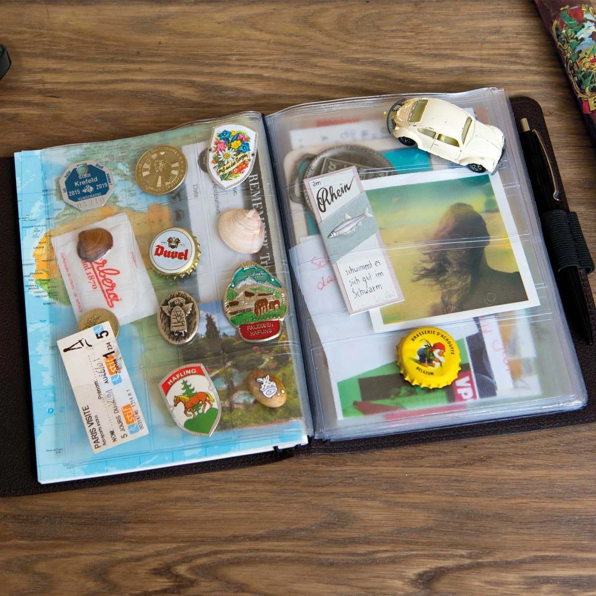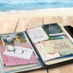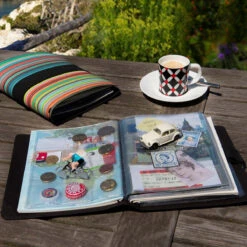 Ce carnet de voyage vous permettra de rĂ©colter toutes sortes de souvenirs pendant vos voyages : tickets de musĂ©e, pièces de monnaie Ă©trangère, timbres, cartes postales, sable, clĂ© usb avec photos…. Ce carnet Ă©pais comporte 16 pochettes en plastique avec de nombreux compartiments de toutes les tailles. Il possède Ă©galement 42 pages pour prendre des notes ou faire des dessins et garder un souvenir unique et très personnalisĂ© de son voyage.