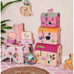 Ce coffre Ă jouets rose est parfait pour une chambre d’enfant. De grande capacitĂ©, on peut y ranger jouets et dĂ©guisements. Il est gai avec ses flamants roses, sa forĂŞt tropicale et sa couleur rose.