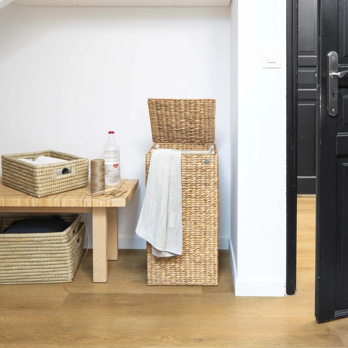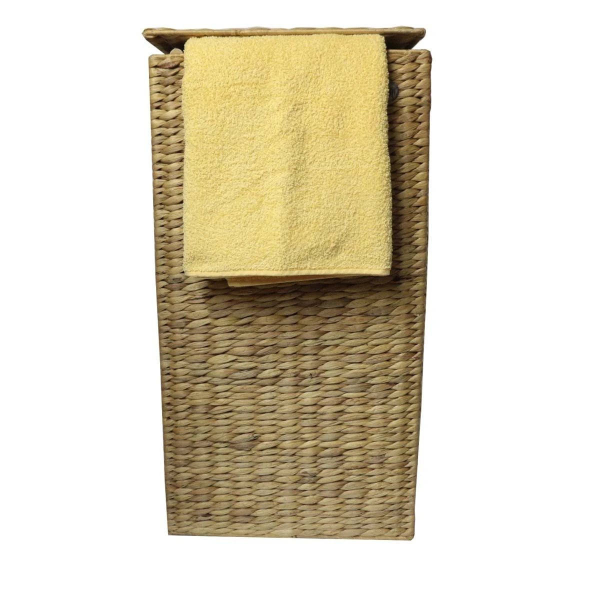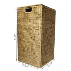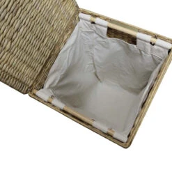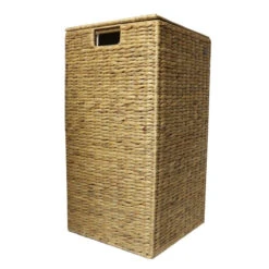 Coffre à linge carré en jacinthe d’eau tressée.