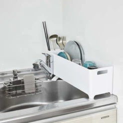 Egouttoir étroit pour vaisselle en plastique blanc (résine ABS).