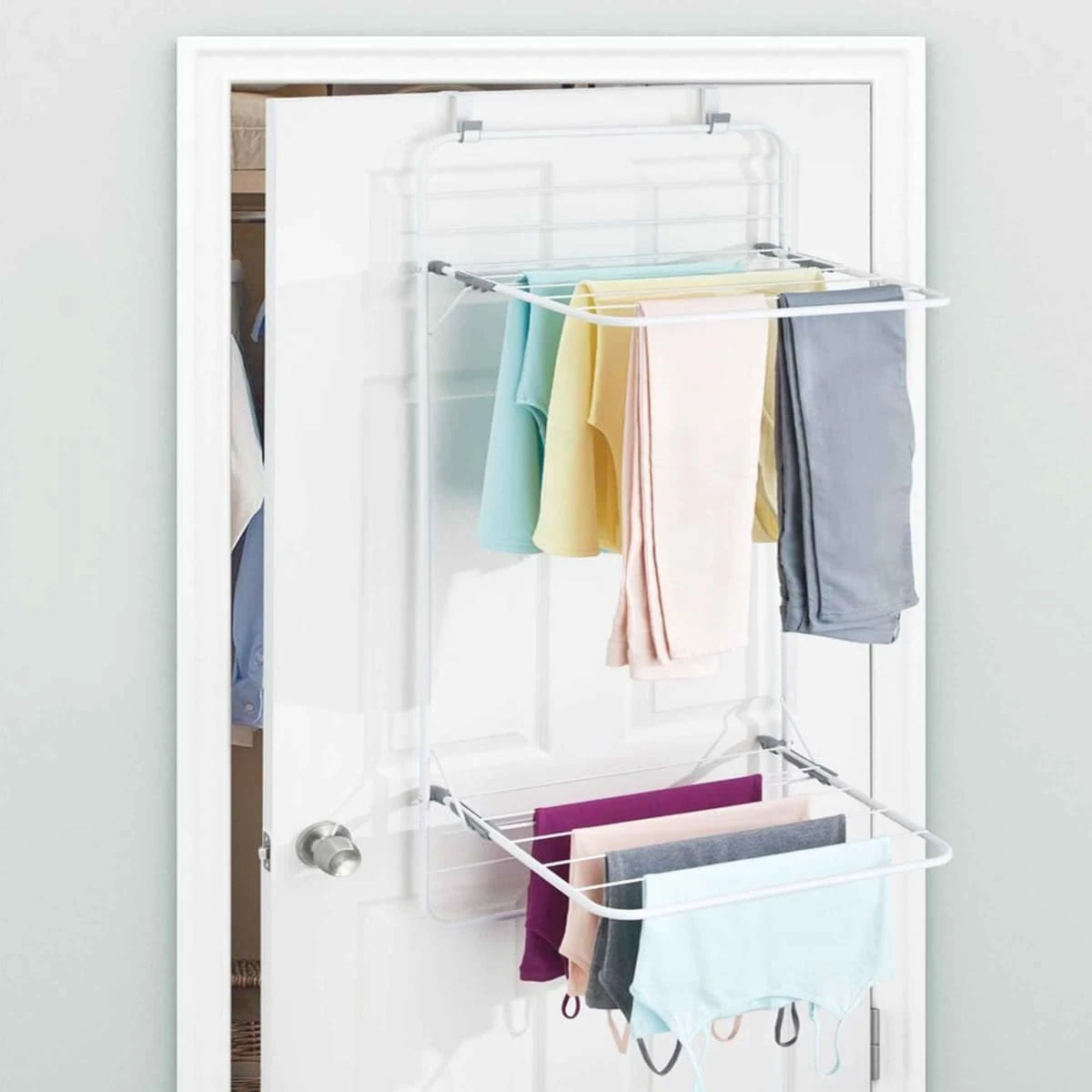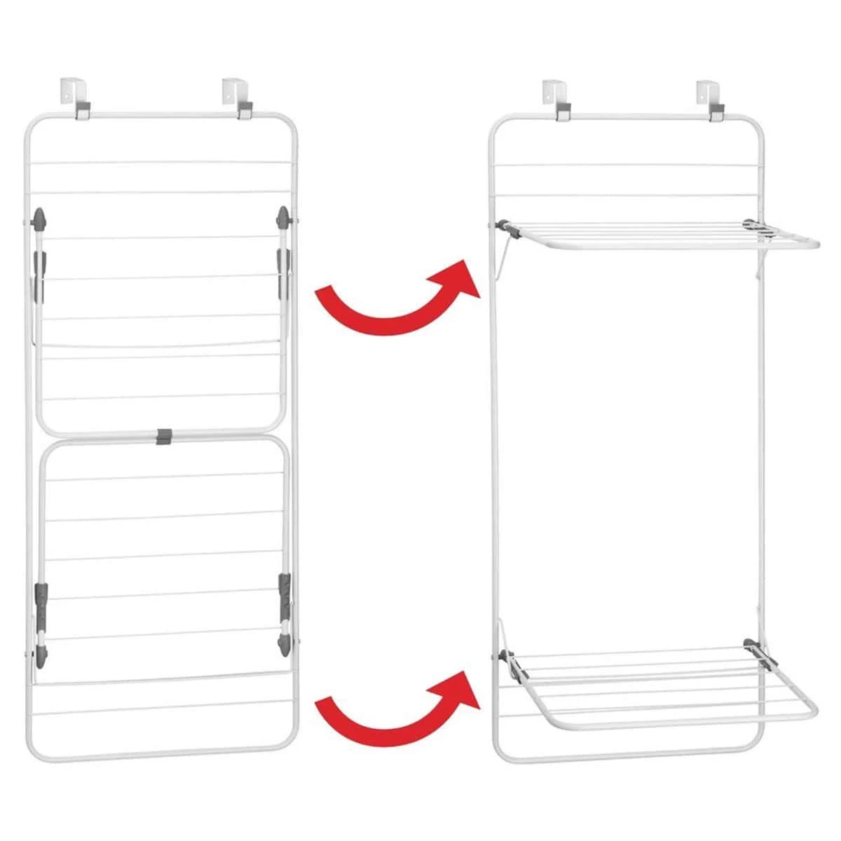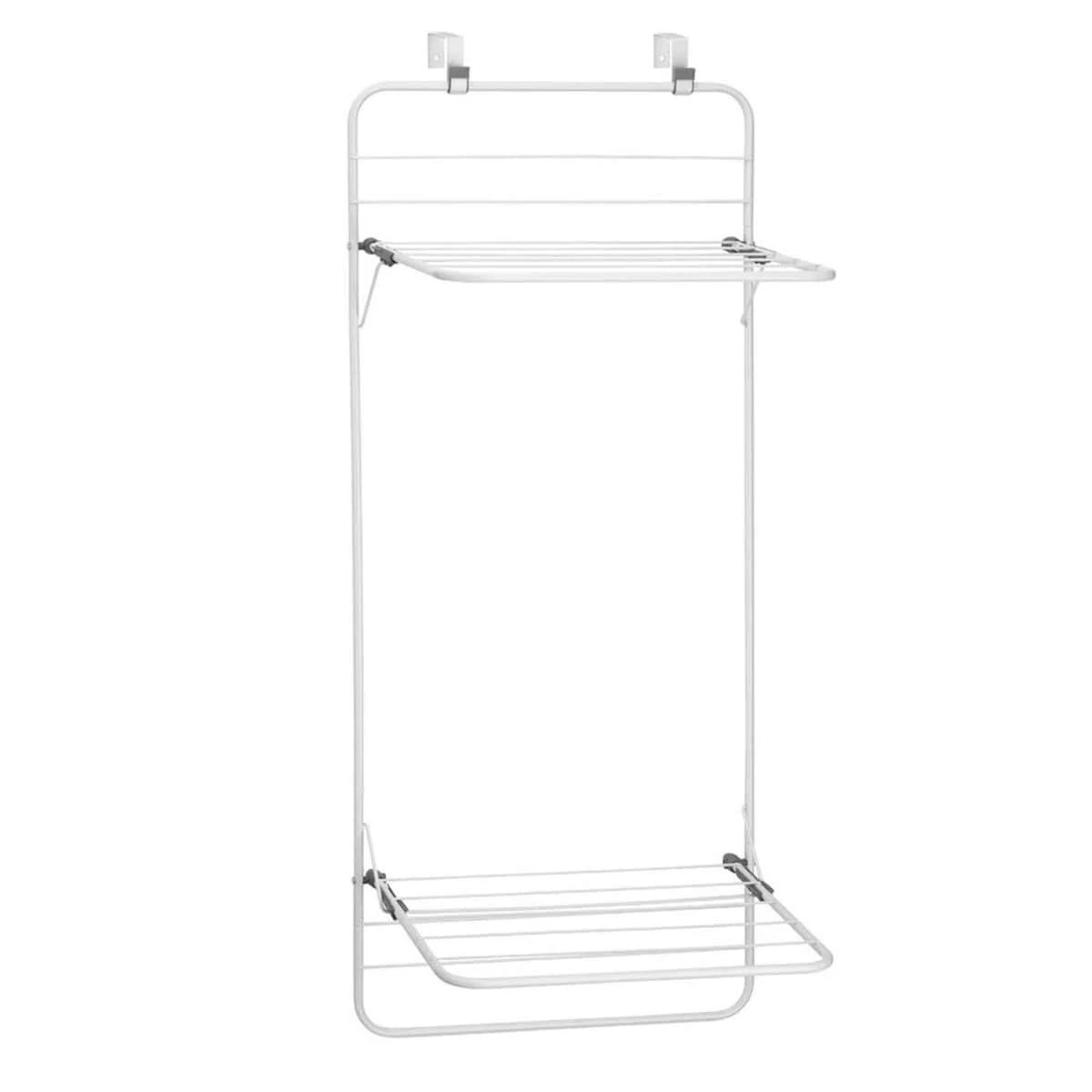 Cet Ă©tendoir Ă linge est idĂ©al pour les petits espaces. Il permet de gagner de la place en se fixant sur une porte de salle de bain ou buanderie laissant l’espace libre mĂŞme quand le linge sèche. Bien que compact, cet Ă©tendoir en mĂ©tal assure 6,7 mètres de sĂ©chage linĂ©aire avec ses 2 niveaux pliables. Vous pourrez y suspendre les longs vĂŞtements sur les niveaux horizontaux et les petits articles sur la partie verticale.