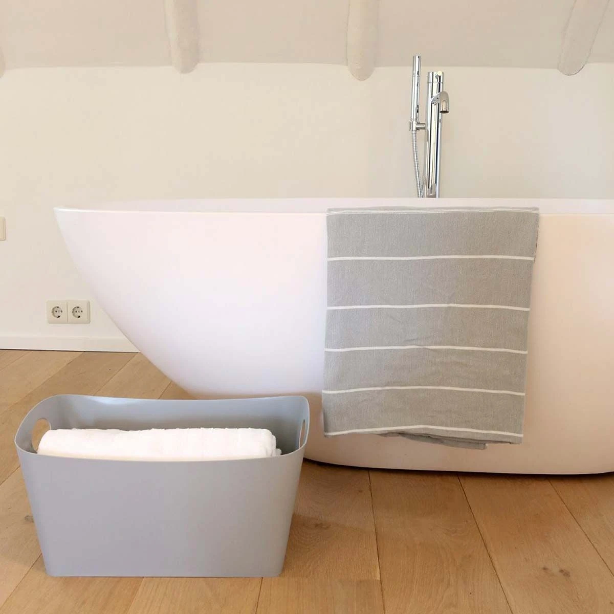 Ce grand bac de rangement est fabriquĂ© Ă partir de fibres de cellulose. La cellulose est une matière vĂ©gĂ©tale renouvelable, recyclable et Ă©cologique. Ce bac rĂ©sistant et pratique permet d’organiser les placards et Ă©tagères de la maison. Vous pourrez y ranger le linge de toilette dans une salle de bain, des vĂŞtements dans une chambre, des chaussures dans une entrĂ©e….. Ses 2 poignĂ©es permettent de le dĂ©placer facilement.