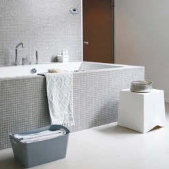 Bac de rangement gris chiné.