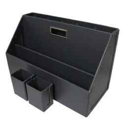 3 compartiments de rangement & 2 pots Ă crayons cartonnĂ©s.Â