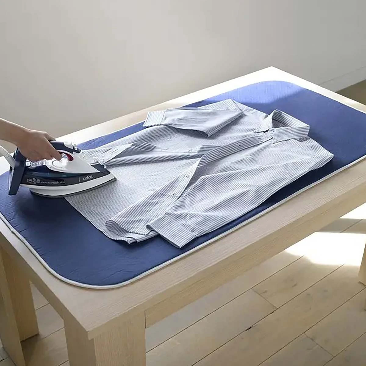 Cette nappe de repassage est idĂ©ale si vous n’avez pas la place de stocker une planche Ă repasser, si vous ne repassez qu’occasionnellement et/ou si vous souhaitez pouvoir repasser en vacances.Â