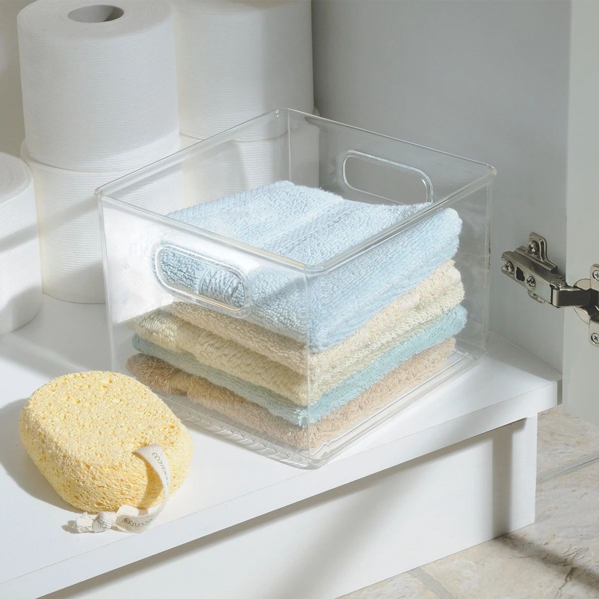 Ce bac cubique en plastique transparent permettra d’organiser vos placards de salle de bain ou mĂŞme votre bureau. Dans votre salle de bain, vous pourrez y ranger vos produits cosmĂ©tiques. Dans votre bureau, vous pourrez y mettre pâte Ă modeler, peinture ou couture. Transparent, il est facile de repĂ©rer ce qui est stockĂ© Ă l’intĂ©rieur.  Ses 2 poignĂ©es le rendent très pratique.