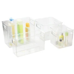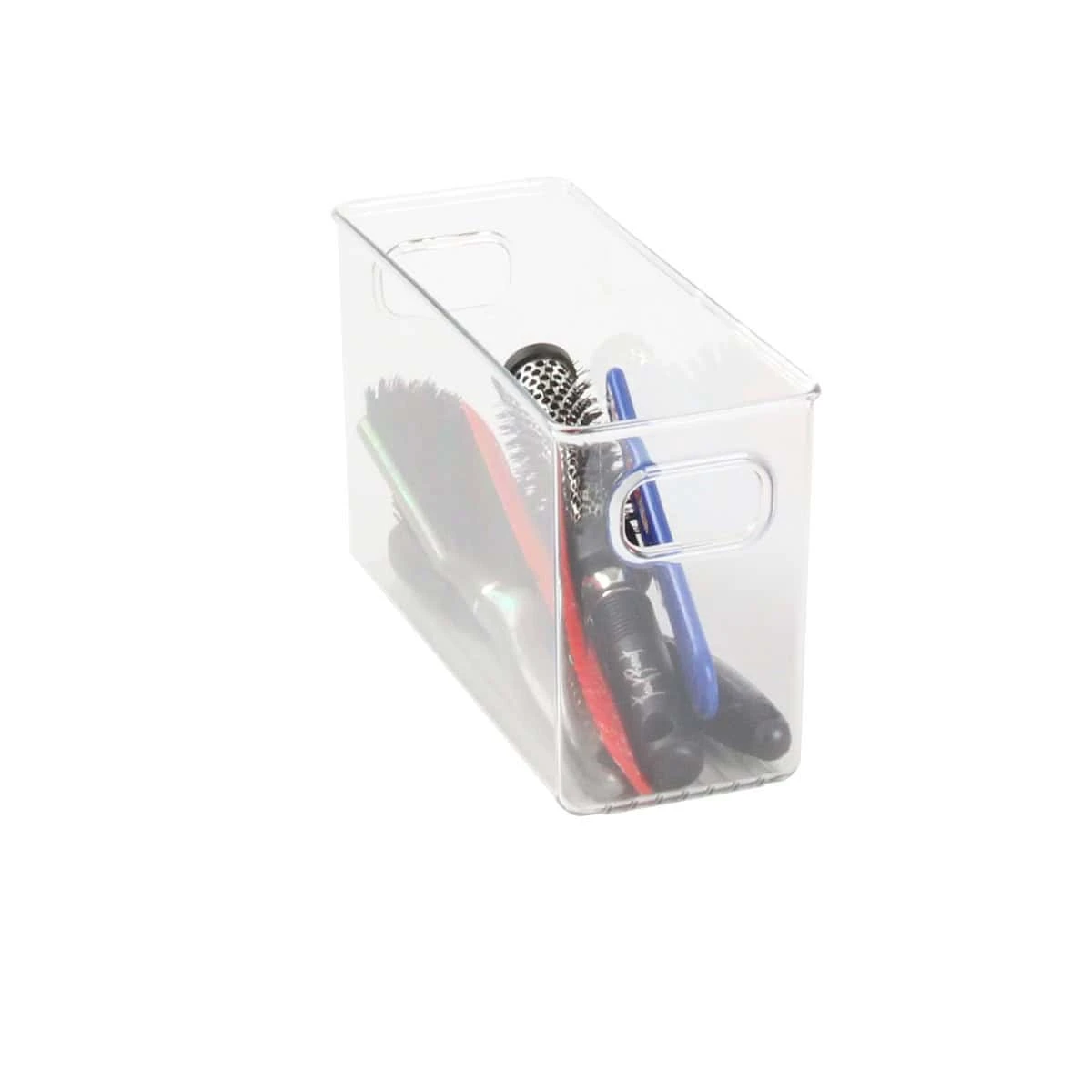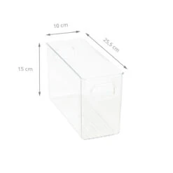 Ce bac rectangulaire en plastique transparent empilable permettra d’organiser vos placards de salle de bain ou mĂŞme votre bureau. Dans votre salle de bain, vous pourrez y ranger vos brosses et peignes ou vos produits cosmĂ©tiques . Dans votre bureau, vous pourrez y mettre pinceaux, peinture ou couture. Transparent, il est facile de repĂ©rer ce qui est stockĂ© Ă l’intĂ©rieur, empilable vous gagnerez facilement de la place.  Ses 2 poignĂ©es le rendent très pratique.