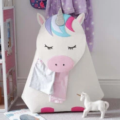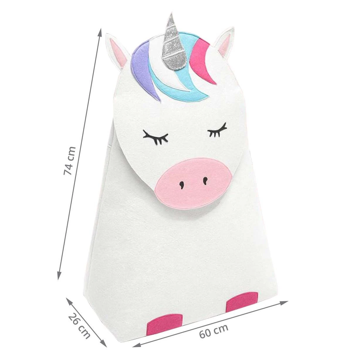 Ce grand panier Ă jouets en forme de licorne donnera le goĂ»t du rangement aux enfants. Il permet de ranger Ă l’abri du regard toutes sortes de gros jouets. La tĂŞte de licorne sert de fermeture. Ce panier en feutre blanc reste droit grâce Ă sa large base. Il a une grande contenance et est lĂ©ger.