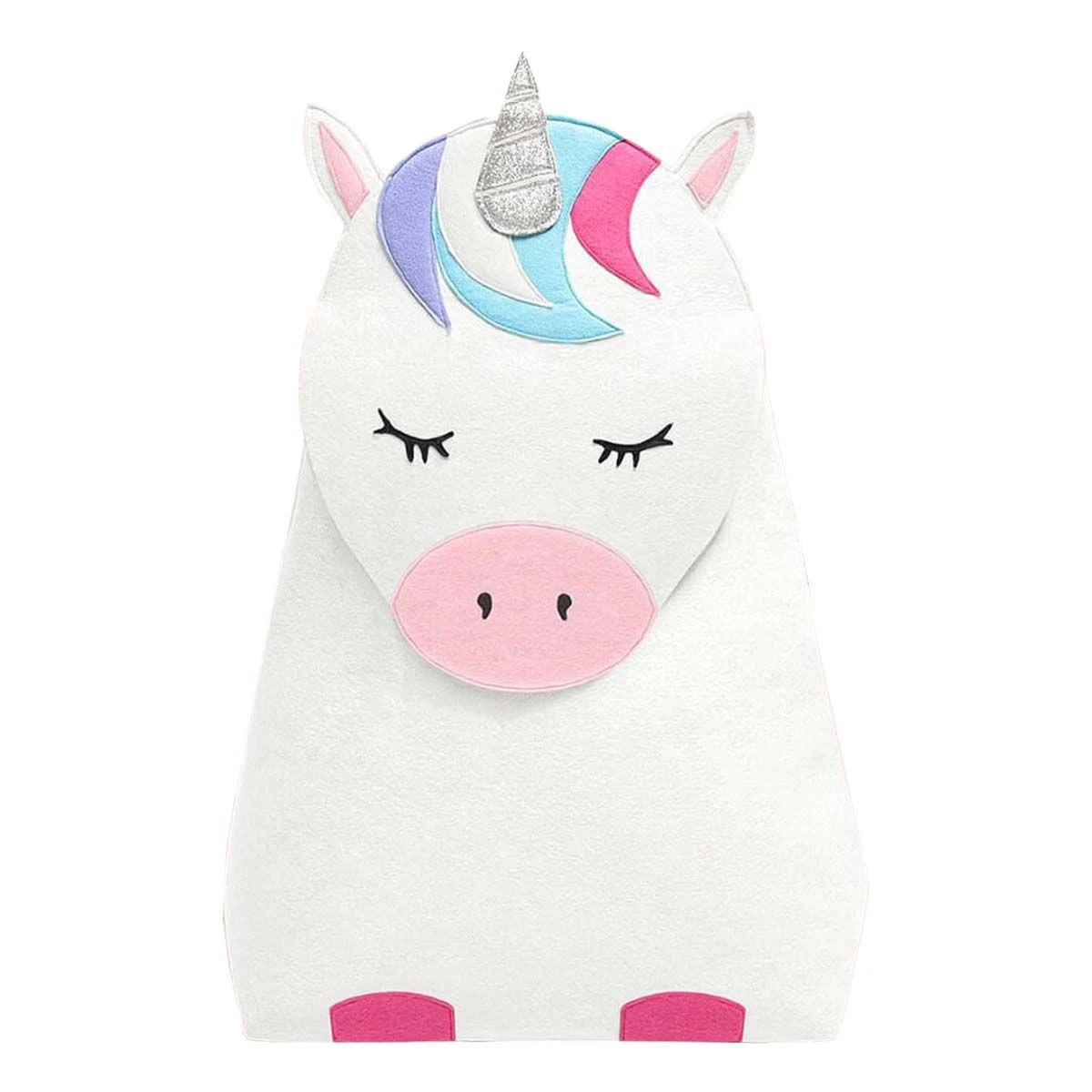 Panier Ă jouets « licorne » en feutre blanc.Â