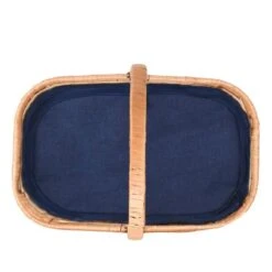 En osier naturel doublĂ© d’un tissu en coton bleu marine. Â