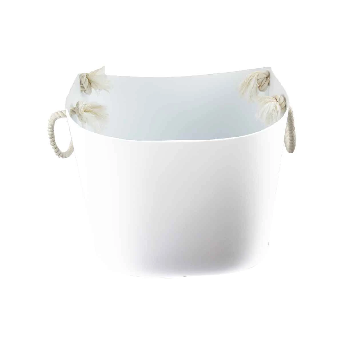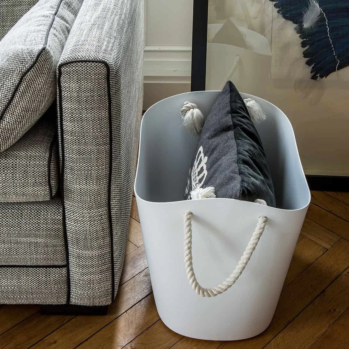 Ce grand panier de rangement blanc est design et contemporain. Dans un salon sur un bout de canapĂ©, il permettra de ranger joliment coussins et plaids mais aussi les jouets d’enfants pour Ă©viter qu’ils ne traĂ®nent partout. Ce joli panier de 38 litres de volume a une belle contenance. Ses 2 cordons blancs lui donnent une apparence de bord de mer.