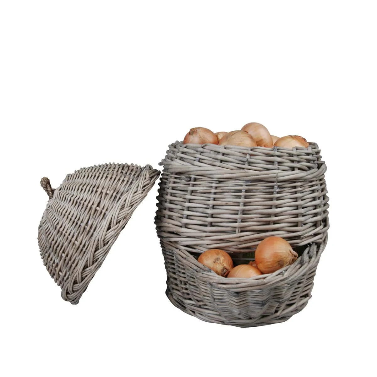 Panier Ă pommes de terre ou Ă oignons en osier mat.