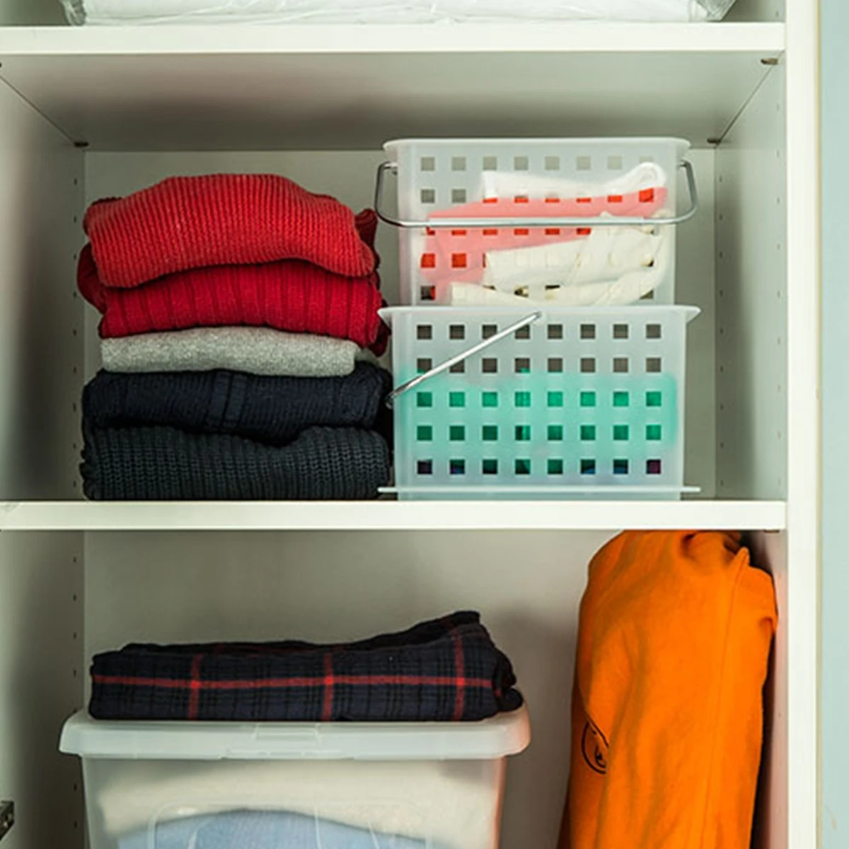 Panier rectangulaire en plastique blanc translucide.