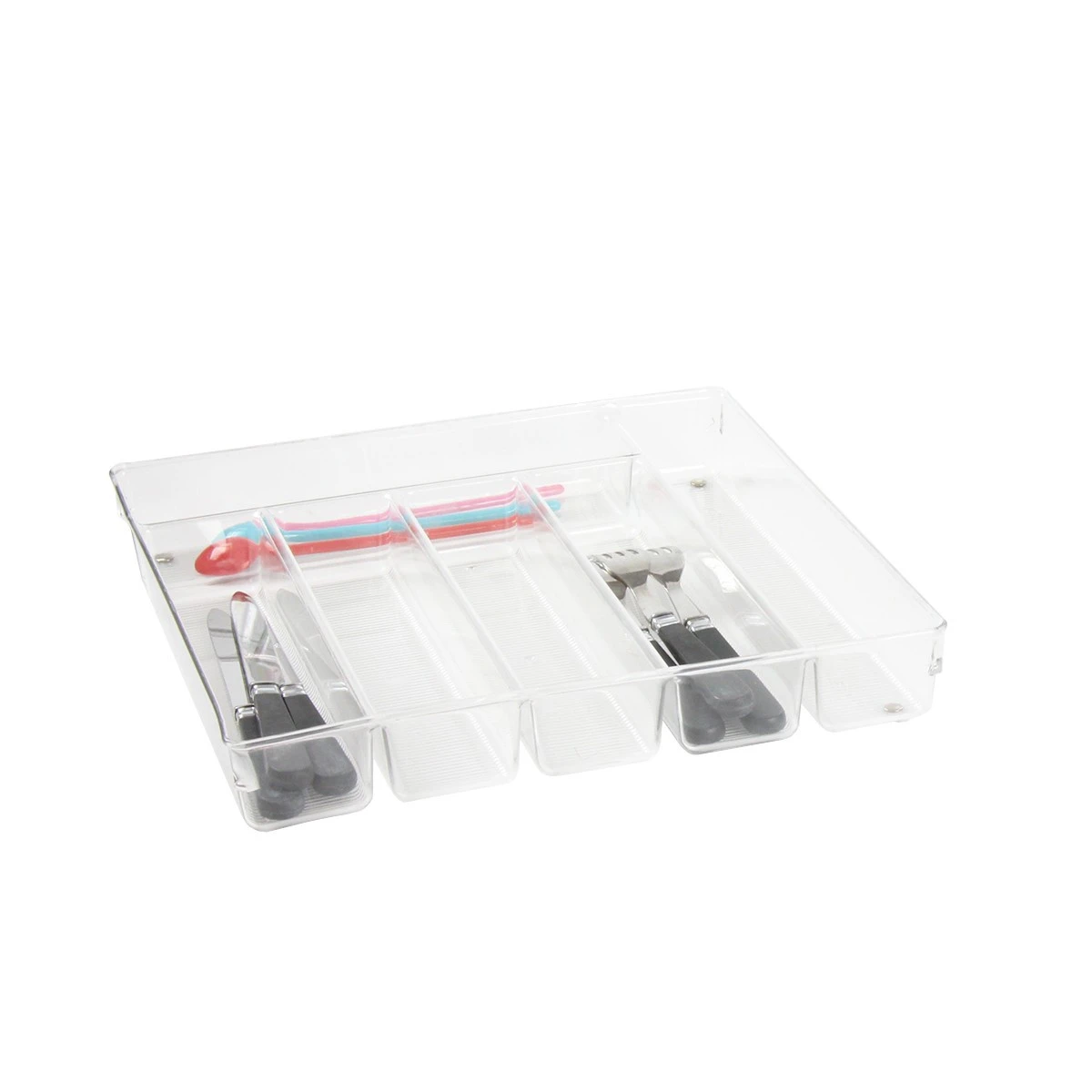 VoilĂ un range-couverts rĂ©sistant et pratique avec son plastique transparent et Ă©pais et ses 6 compartiments. Sobre et Ă©lĂ©gant, il conviendra Ă toutes les cuisines. Vous pourrez ainsi le glisser dans un tiroir, ou un placard, afin d’y ranger vos couverts et ustensiles de cuisine. Fini les fourchettes, couteaux et cuillères qui se mĂ©langent dans vos tiroirs ! Un rangement simple qui facilite la vie.