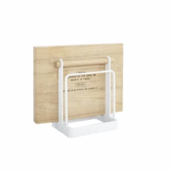Ce support à planches à découper est très pratique sur le plan de travail d’une cuisine. Il permet d’y ranger 2 planches à découper une épaisse de moins de 2,5 cm d’épaisseur et une autre fine de moins de 1,5 cm d’épaisseur. Rangées verticalement, elles seront à portée de main lorsque vous aurez besoin de couper gigot ou légumes.