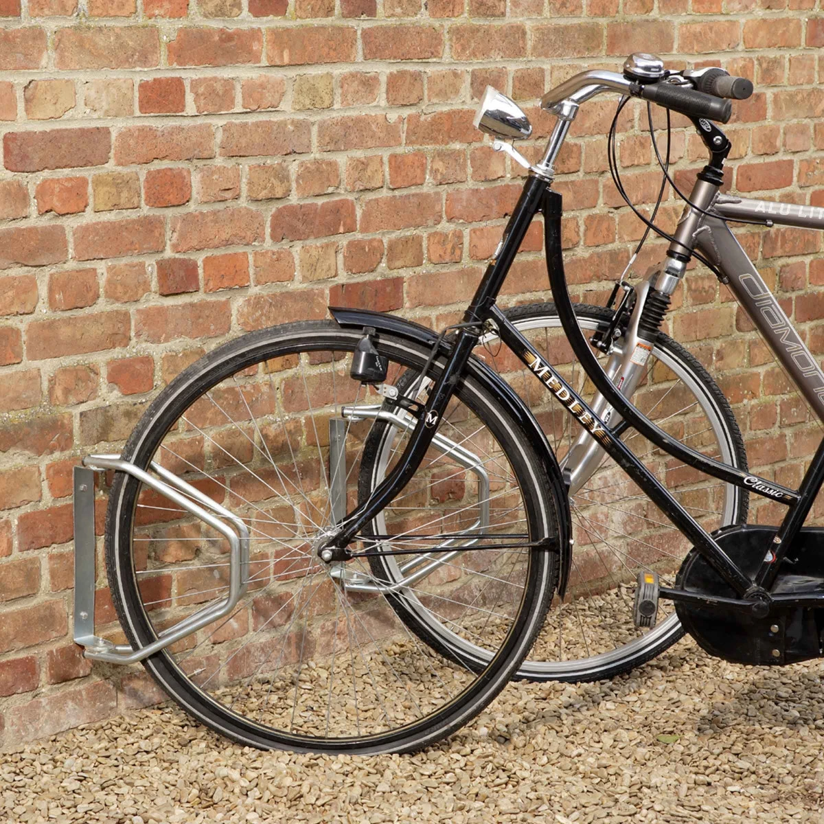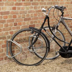 Si vous avez besoin de ranger plusieurs vélos comptez 60 cm de distance entre les supports. Et si votre espace est plus étroit encore, vous pouvez fixer chaque range vélo à 35 cm de distance en emboîtant un vélo par la roue avant et l’autre par la roue arrière. Cependant dans ce cas, le pivotement des râteliers sera moins facile.