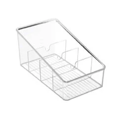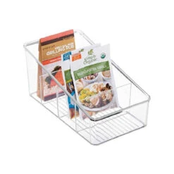 Ce bac de rangement transparent est idĂ©al pour ranger les sachets de soupes, de sauces ou de compotes. Avec ses 4 compartiments, il permet de ne plus avoir tous ces sachets en vrac et de gagner de la place dans le placard de cuisine. Ce bac permet de stocker les sachets Ă la verticale (les petits devant, les grands derrière) et d’exploiter toute la profondeur d’un placard de 30 cm de profondeur. Il peut Ă©galement ĂŞtre utilisĂ© dans un rĂ©frigĂ©rateur.