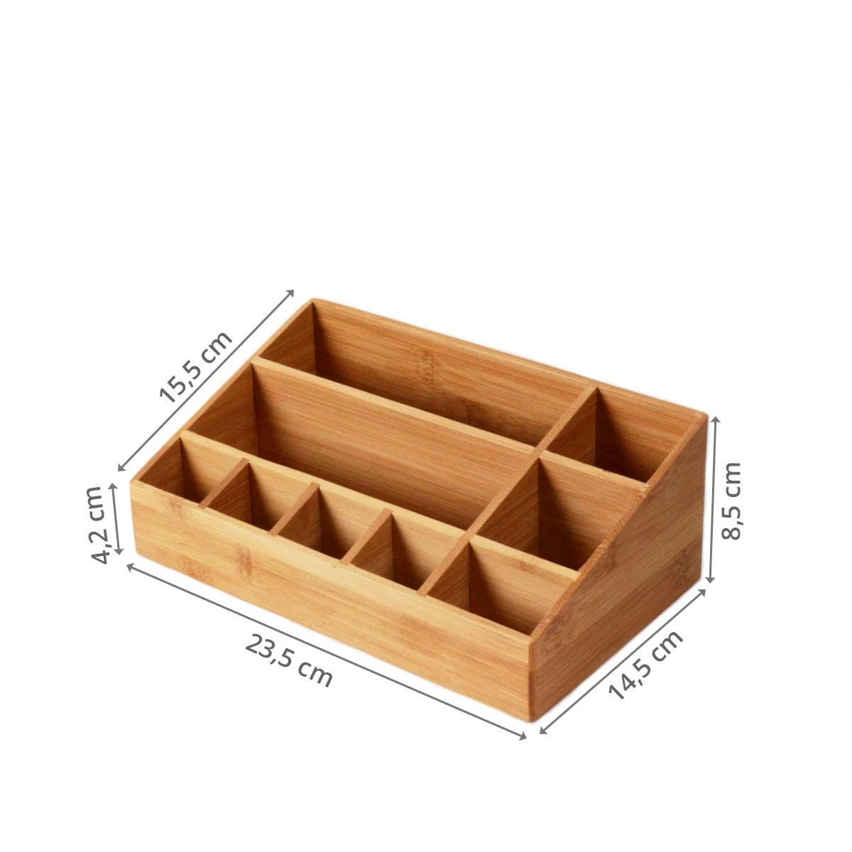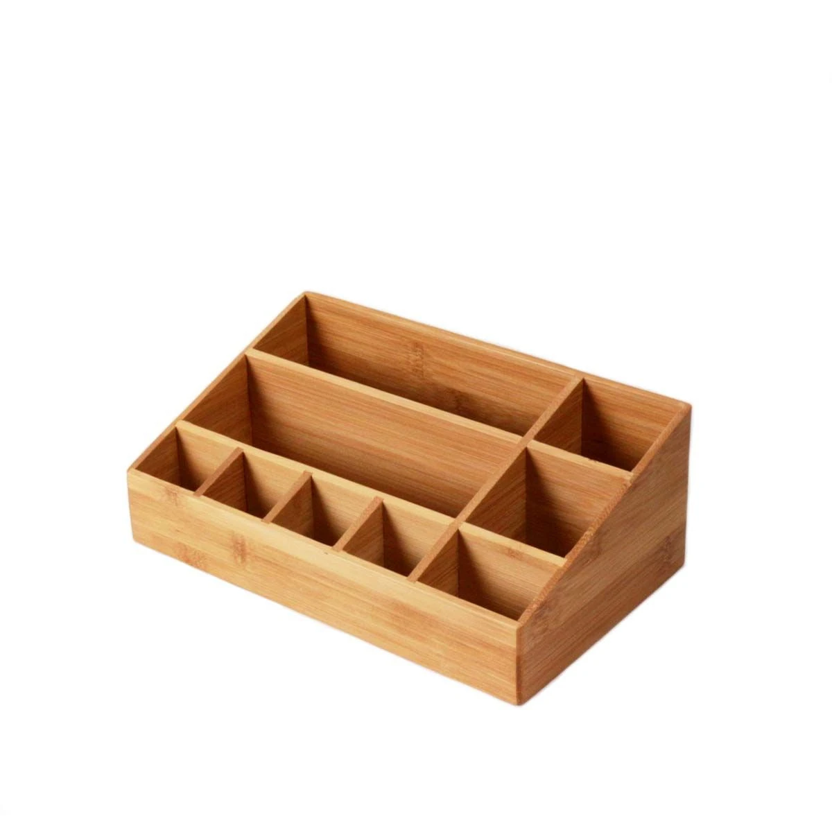 Organisateur de maquillage en bambou Ă 9 compartiments.