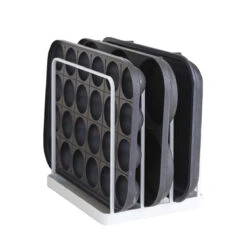 Ce rangement à 3 compartiments est très pratique pour maintenir à la verticale plateaux de cuisine et planches à découper. Il se pose sur le plan de travail ou dans un placard suffisamment haut. Ce rangement rend les accessoires de cuisine plats beaucoup plus accessibles. Avec cette couleur blanche et sa matière en métal, il est sobre et peut très bien être mis en évidence sur une étagère sans dénaturer la cuisine. Ses 4 pieds antidérapants lui assurent une bonne stabilité.