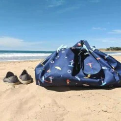 Sa couleur bleue et son motif estival se prĂŞtent totalement Ă la plage.
