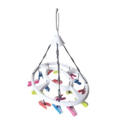 Ce séchoir à linge tourniquet permet de suspendre chaussettes, lingerie, masques et autres accessoires. Il possède 16 pinces à linge solides qui ne laissent pas de marques sur les tissus. Les pinces à linge sont de couleurs différentes ce qui apporte de la gaieté à une salle de bain ou une buanderie.