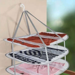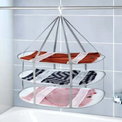 Ce séchoir filet est l’accessoire idéal pour laisser sécher vos pulls et vêtements délicats. Étendus sur 3 niveaux, les pull-overs sèchent particulièrement vite. La matière en mailles de filet laisse l’air passer pour un séchage rapide.