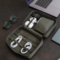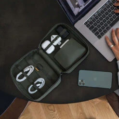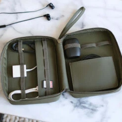 Cette trousse vert kaki est parfaite pour organiser tous ses câbles, prises, écouteurs, cartes mémoire et autres accessoires électroniques. Ses nombreuses sangles et ses 2 poches permettent de donner une place à chaque chose pour éviter que tout se mélange.
