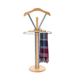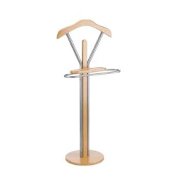 Ce valet de chambre en bois et mĂ©tal vous permettra d’organiser chaque soir vos tenues du lendemain. ÉquipĂ© d’un cintre et d’un portant fixes, ce valet pourra accueillir vos chemises, vestes, pantalons et foulards sans les froisser. Un petit plateau vous permettra Ă©galement de poser vos bijoux, montre et boutons de manchettes.